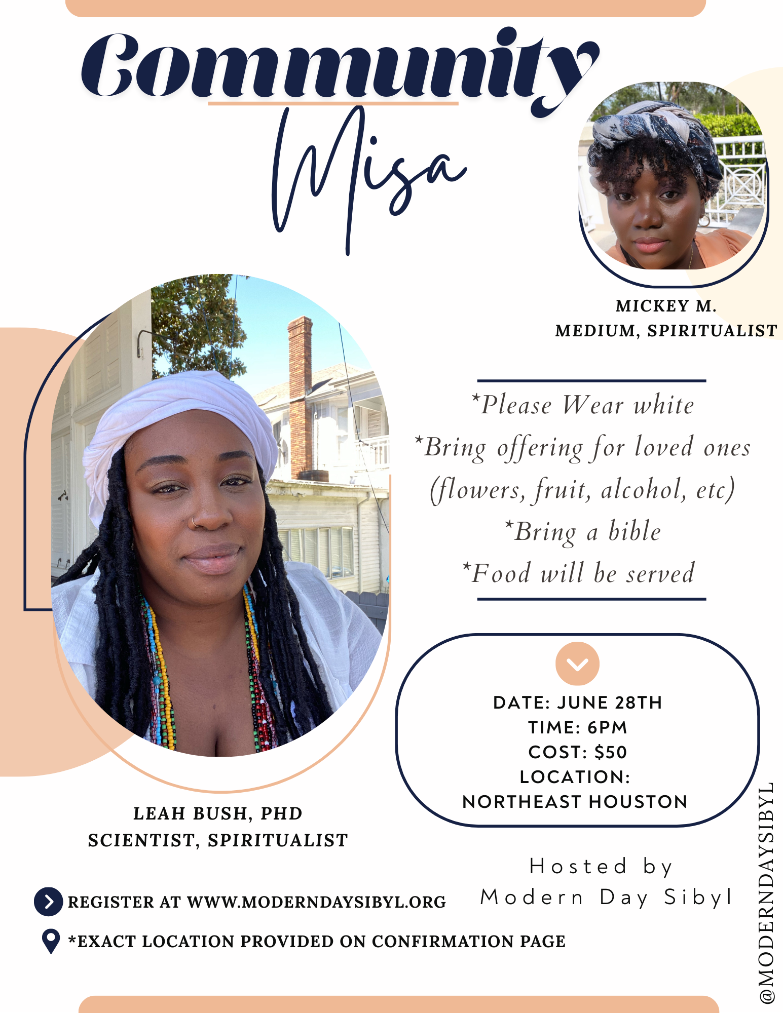 Join us for communion with our ancestors and loved ones at the Community Misa. Experienced mediums will guide you through ceremony and deliver messages from passed on loved ones and guides. Event will be held June 28th 2025 at 6:00pm.